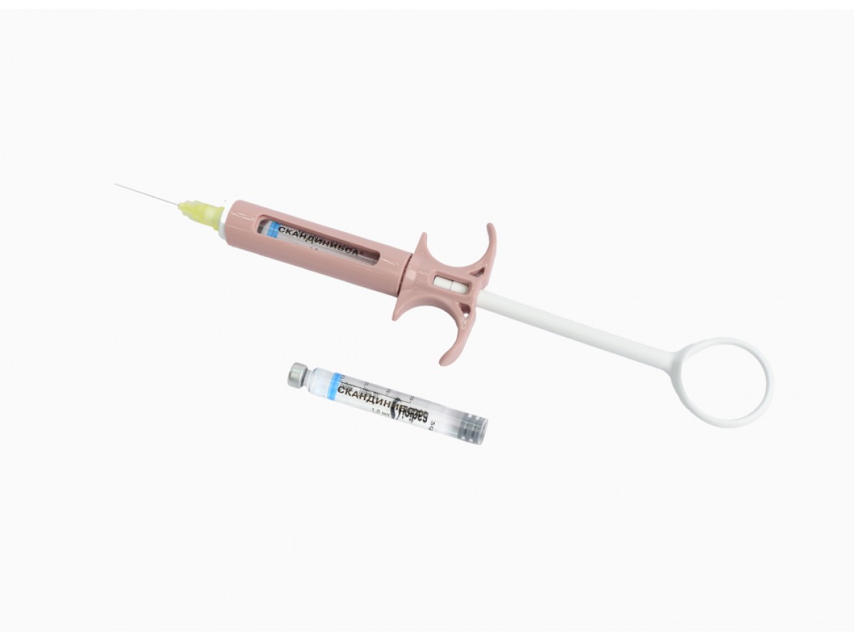 - Карпула 1,8 мл с Скандинибса 3% (Inibsa) с содержанием мепивакаина гидрохлорид — 1 шт.