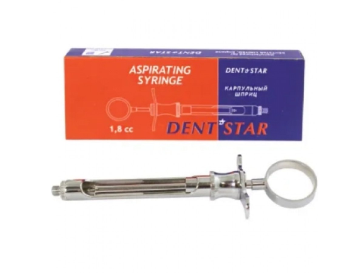 Шприц карпульный с одним кольцом 25-30 — незаменимый инструмент для введения анестезии пациенту. Универсальная конструкция устройства совместима с иглами американского и европейского типа. Шприц оснащен крупным окошком видимости, что позволяет беспрепятственно контролировать процесс аспирации. Шприц изготовлен из особого легкого сплава латуни, покрытой специальным антикоррозийным составом из никеля и хрома, выдерживает температуру до 180 градусов, что необходимо для стерилизации и дезинфекции инструмента перед непосредственно уколом. Производитель: Dentstar, Великобритания, Лондон.
