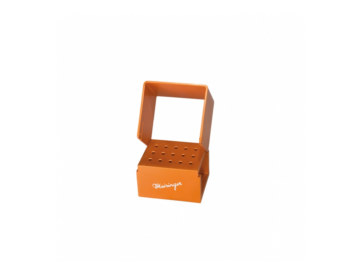 Подставка для боров из анодированного алюминия. Для хранения и дезинфекции боров. 15 отверстий для боров под прямой наконечник (HP). Производитель: Meisinger, Германия.