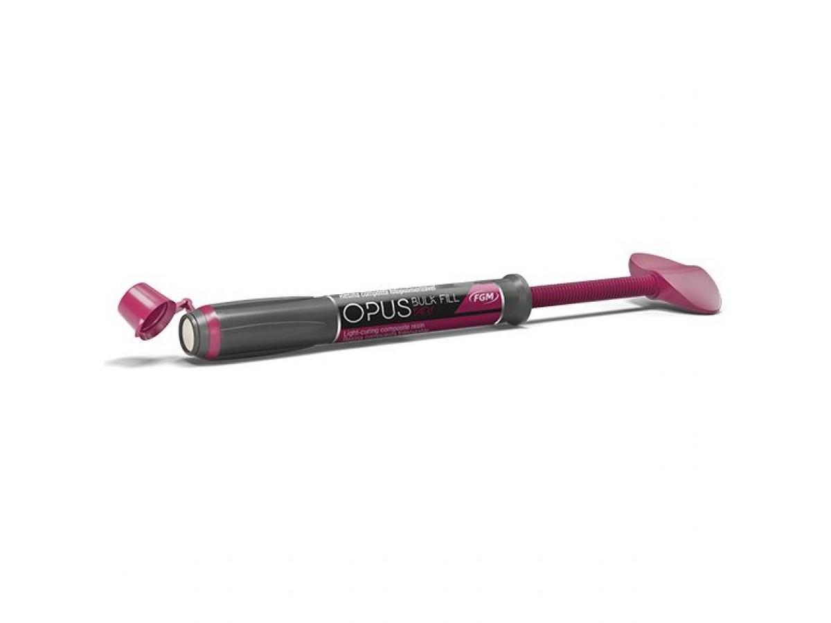 Opus Bulk Fill APS — светоотверждаемый композит, рекомендуемый для реставраций, выполняемых большими порциями. Композит имеет примерно 79% наполнителя нагрузки (по массе). Производитель: FGM, Бразилия.