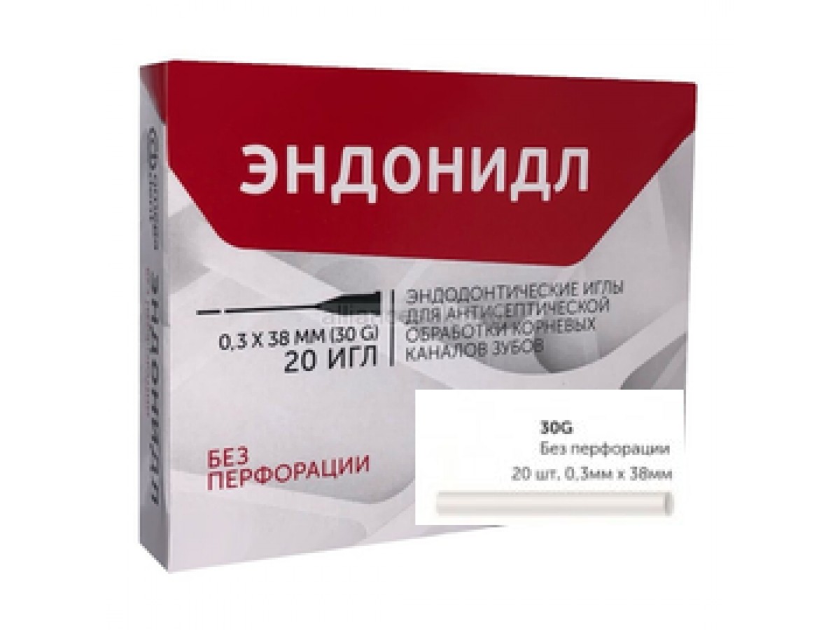 - Эндонидл эндодонтические иглы 0,3х38мм (30G) без перфорации - 20 шт.