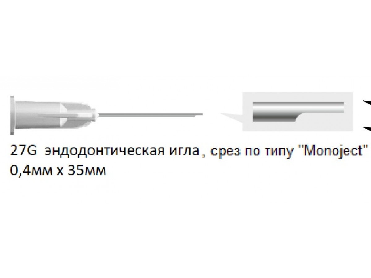 - Размер 0,4 мм х 35 мм с иглой типа Monoject (полка).