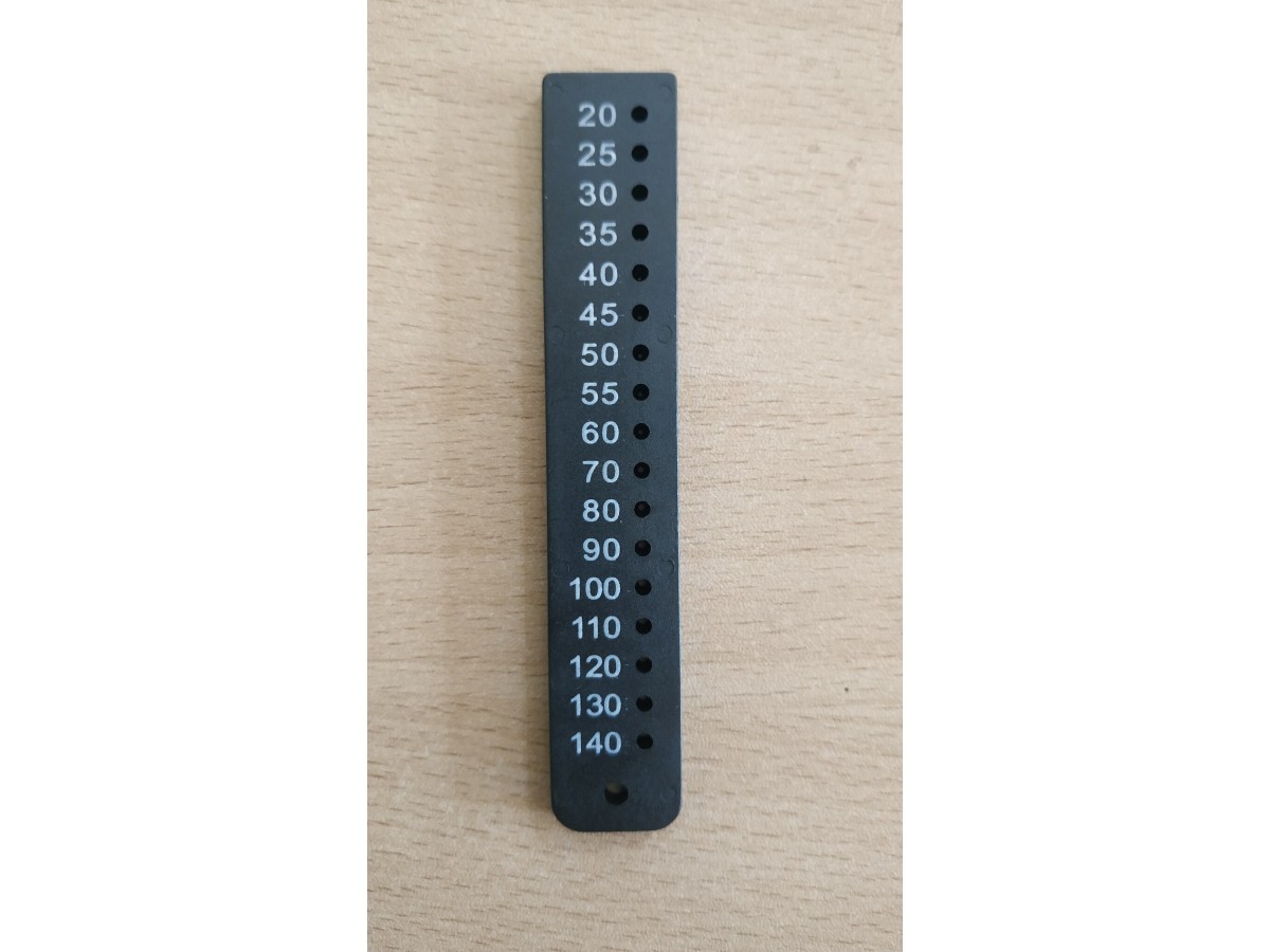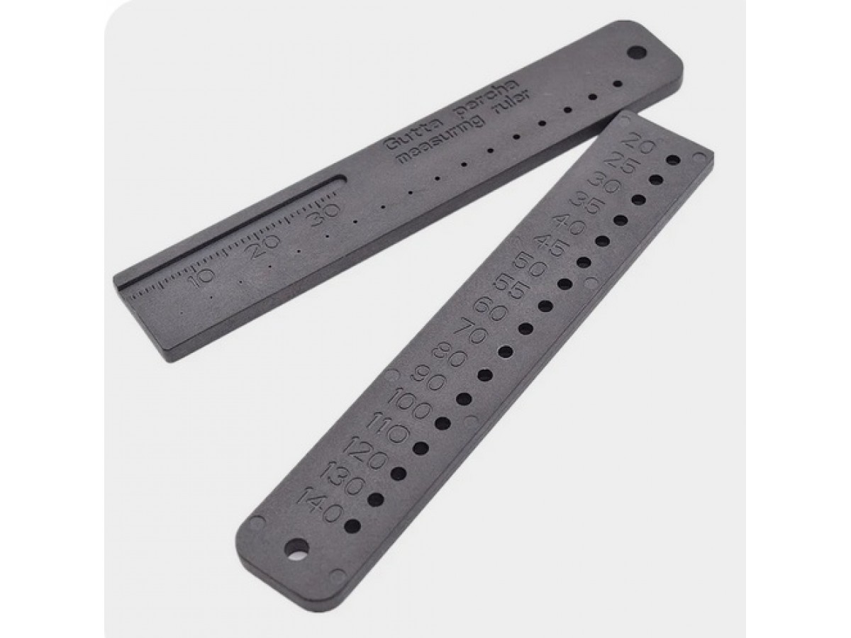 Линейка сильно упрощает процесс калибровки штифта, таким образов облегчая работу стоматолога и экономя его время. Как правило, стоматологические линейки снабжены специальными калибровочными отверстиями диаметром от 20 до 140 мм (размеры соответствуют номеру эндоинструментов). Измерительный прибор необходим для эндодонтических операций, прежде всего для обработки корневых каналов и установки штифтов с последующим протезированием.