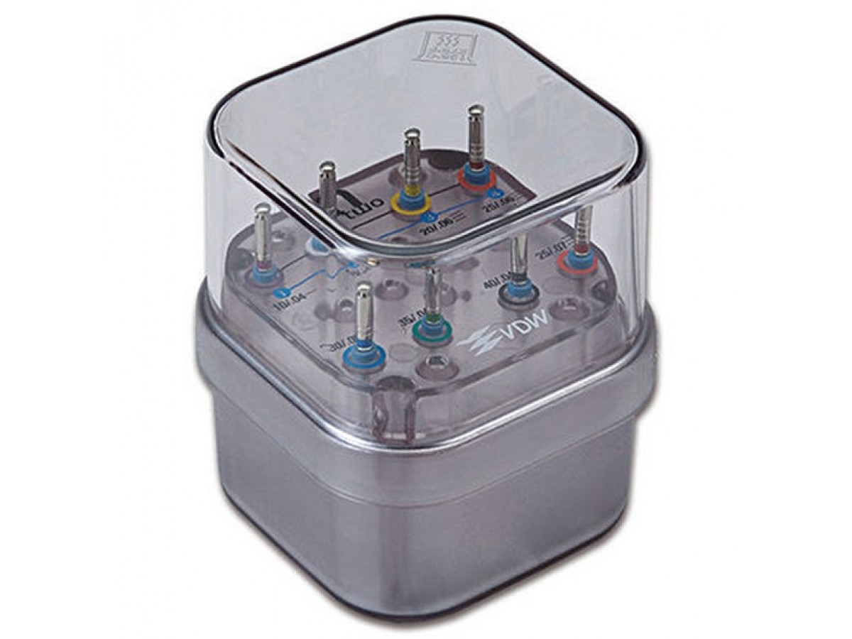 - Для хранения и бережной стерилизации инструментов, а также гуттаперчивых и бумажных штифтов VDW предлагает специальные боксы, которые представляют собой контейнеры из металлизированной пластмассы с крышками.