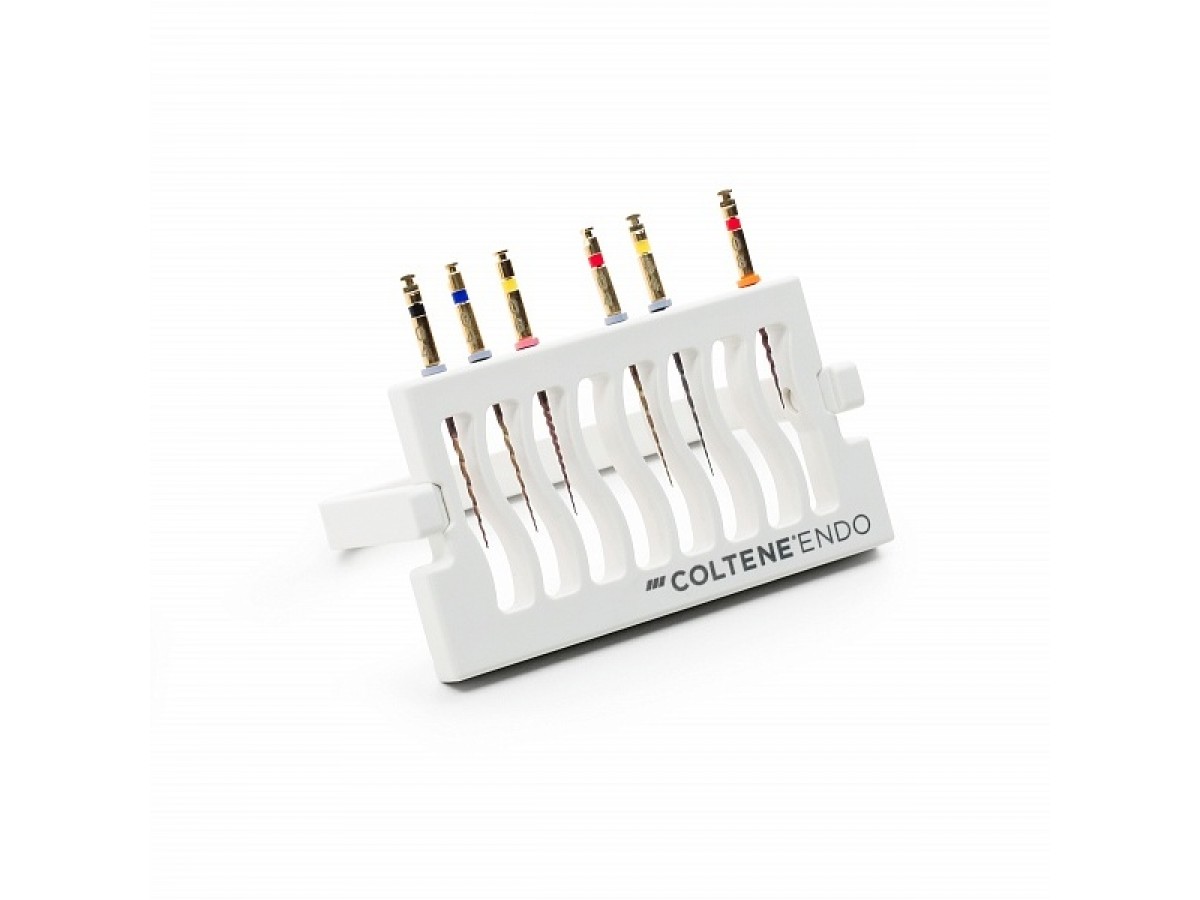 Органайзер для хранений эндодонтических файлов позволяет фиксировать файлы в процессе работы, когда надо менять насадки между манипуляциями. И хранить их в остальное время. Органайзер вмещет 8 файлов. Производитель: Coltene, Швейцария.