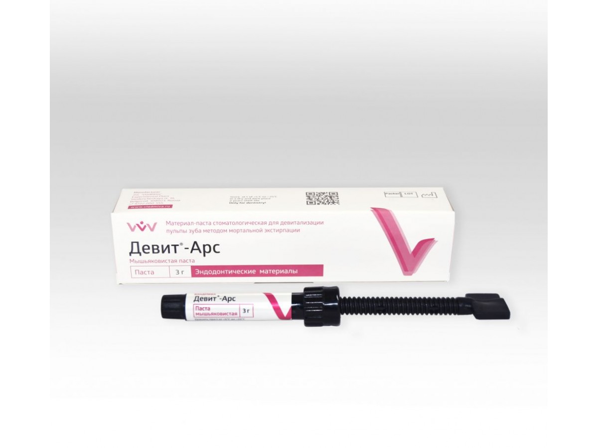 Девит АРС - мышьяковистая паста для девитализации пульпы. Производитель: ВладМиВа, Россия.