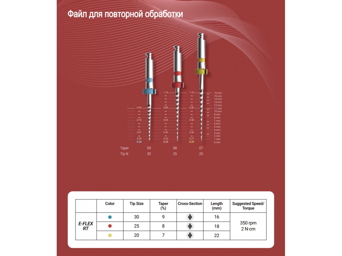 E-FLEX RT – файлы для распломбировки и перелечивания каналов. Производитель: Eighteeth, Китай.