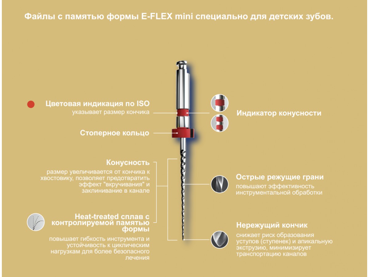 Укороченный файл для детских зубов, а также тех случаев, когда пациент не способен широко открыть полость рта. Производитель: Eighteeth, Китай.
