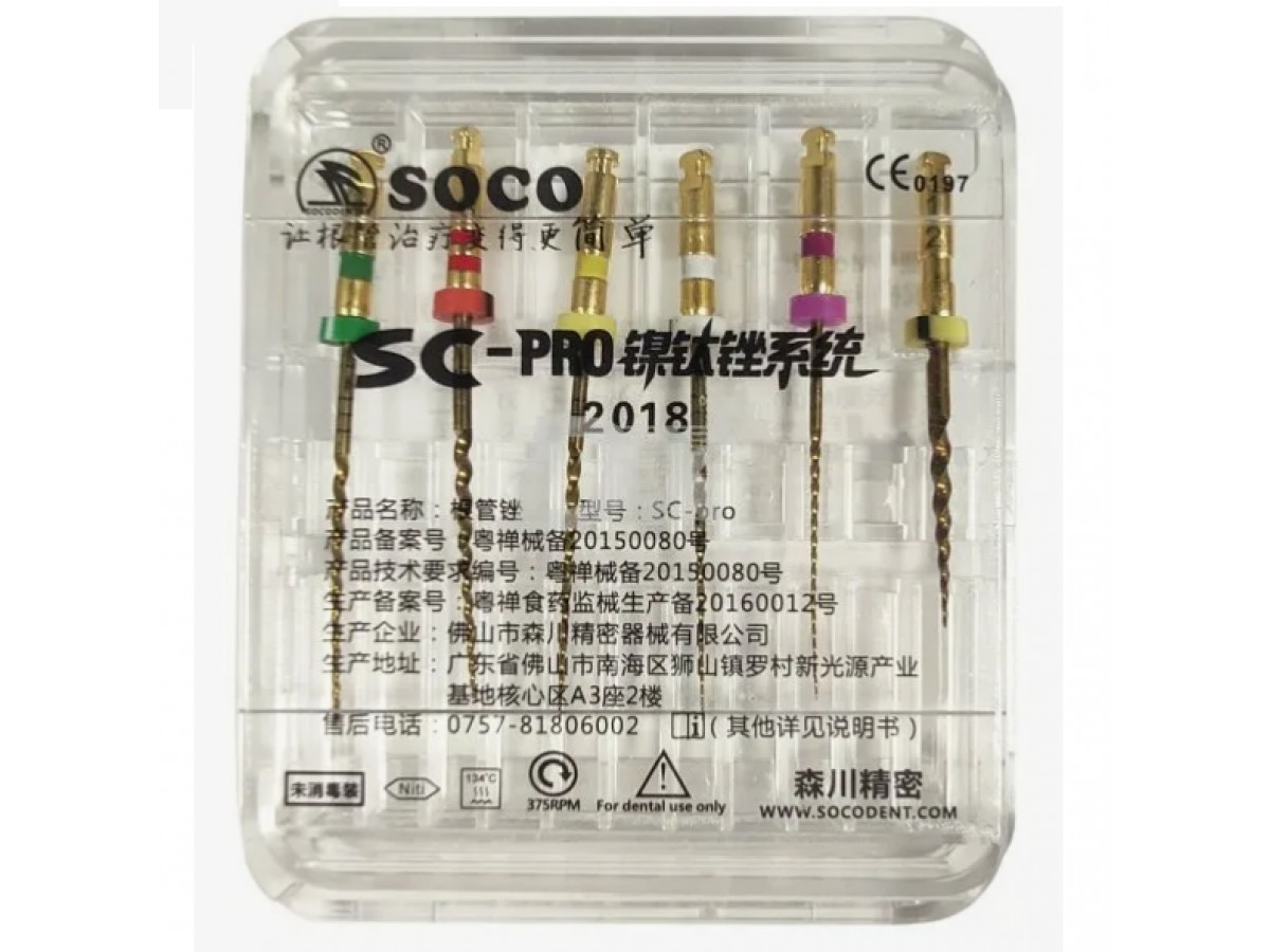 Набор ротационных файлов с памятью формы из никель-титанового сплава. Производитель: SOCO, КНР.