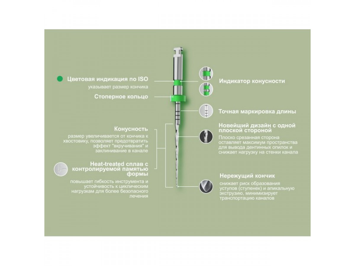 Новейший дизайн с одной плоской стороной для максимально эффективного удаления дентинных опилок. Производитель: Eighteeth, Китай.