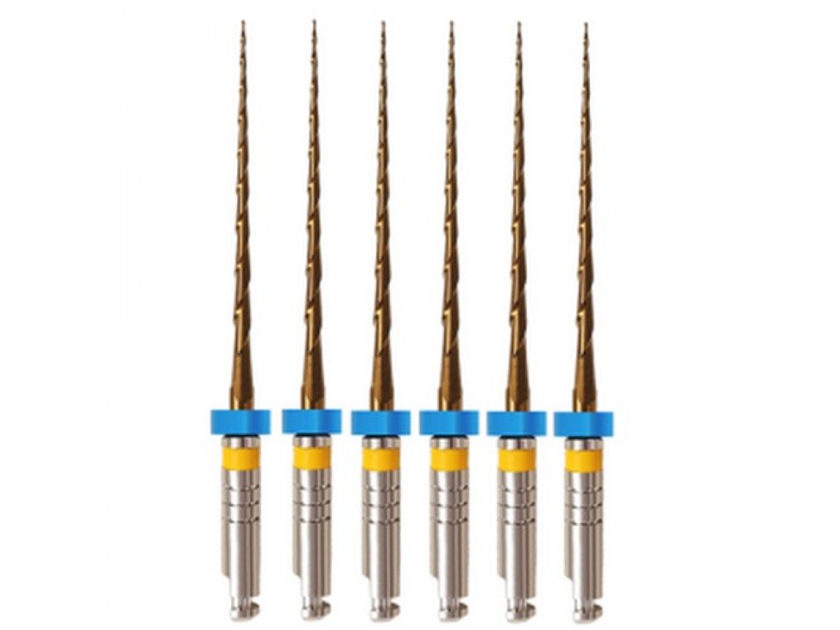- Сплав Gold более гибкий, по сравнению с классическим сплавом Ni-Ti, более высокая устойчивость к циклическим нагрузкам, более низкий риск поломки инструмента в корневом канале.