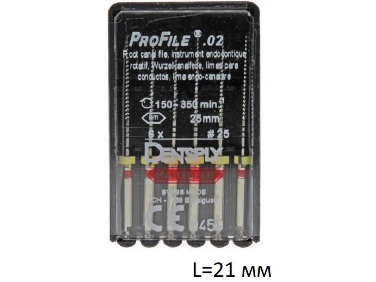 - Множественная конусность ProFile®, варьирующая от 2 до 8%, позволяет вам успешно проходить корневой канал на всю длину, используя технику crown-down.