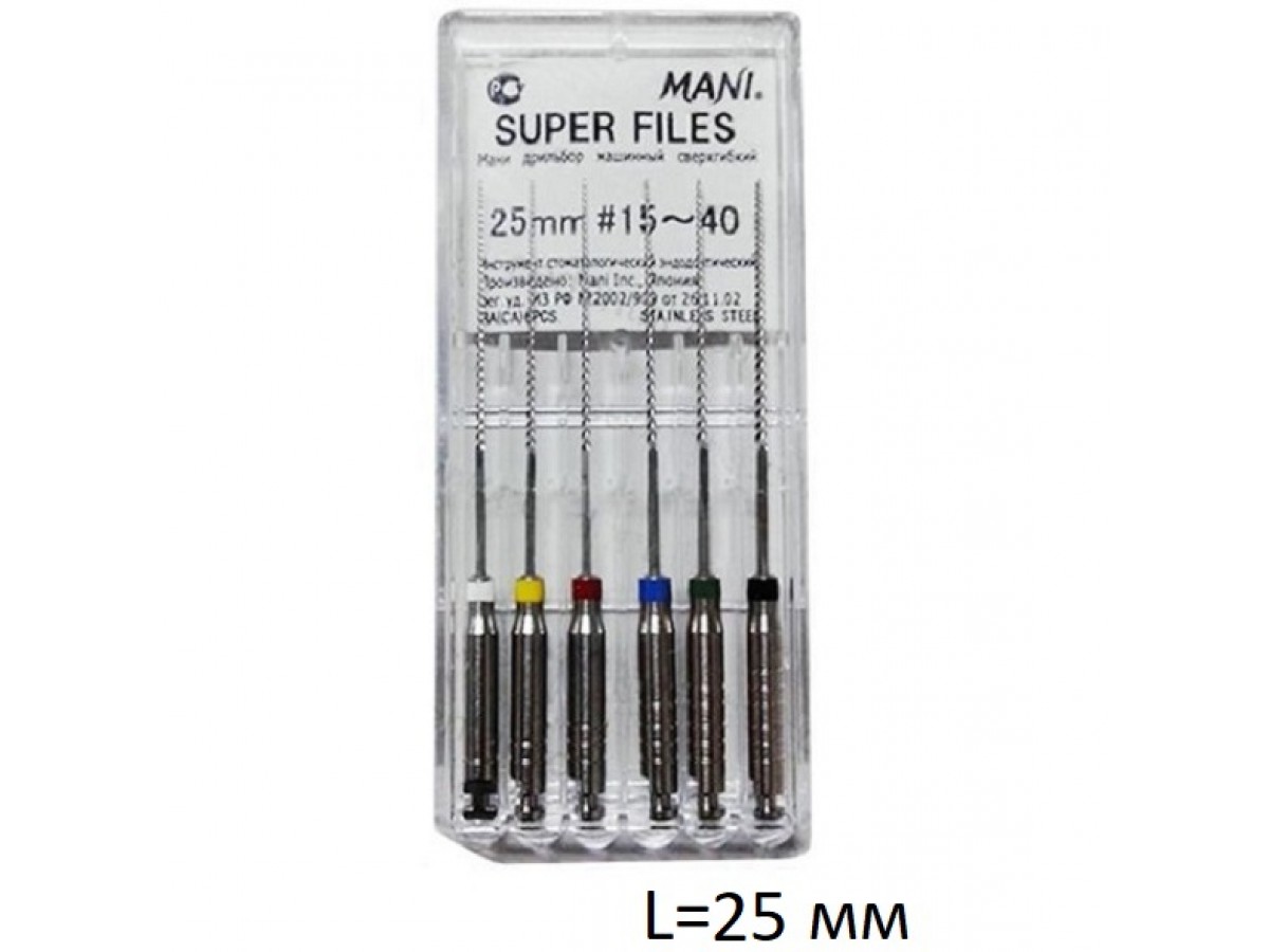 Super Files - машинный режущий стоматологический эндодонтический инструмент со спиральной нарезкой рабочей части. Производитель: Mani Inc., Япония.