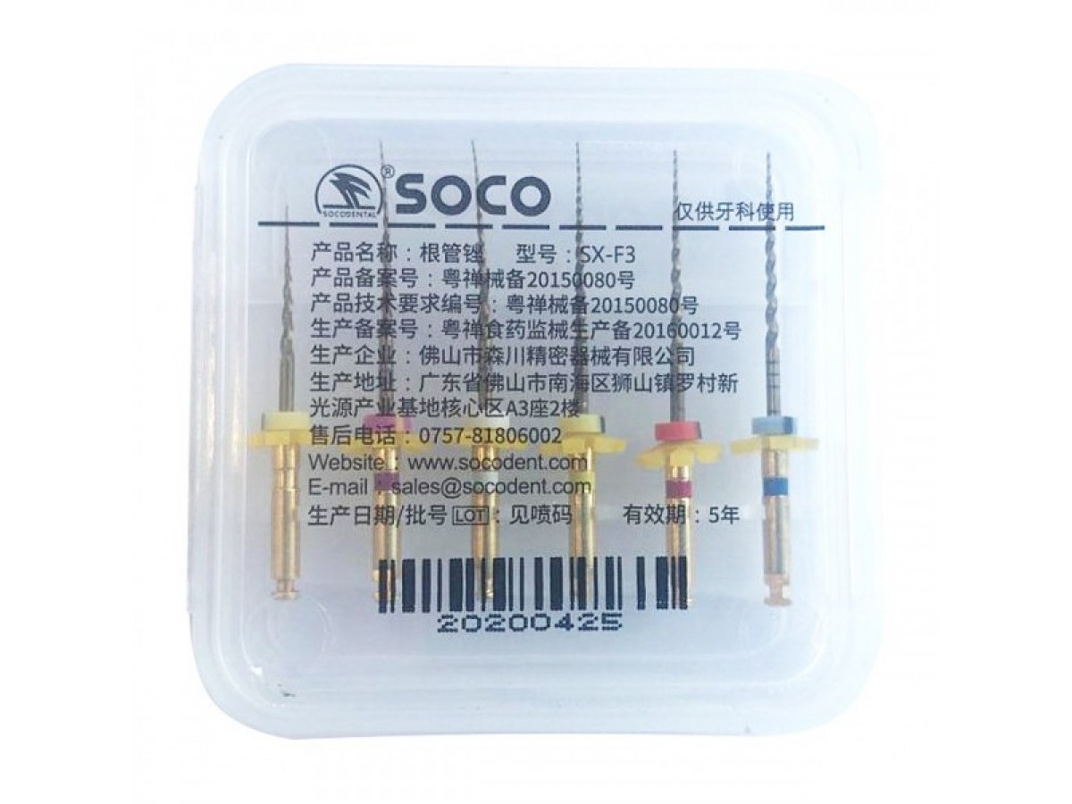 Машинные протейперы SCF-Niti Super Files - универсальные инструменты, способные ускорить обработку корневого канала за счёт разной геометрии конуса. Производитель: SOCO, КНР.