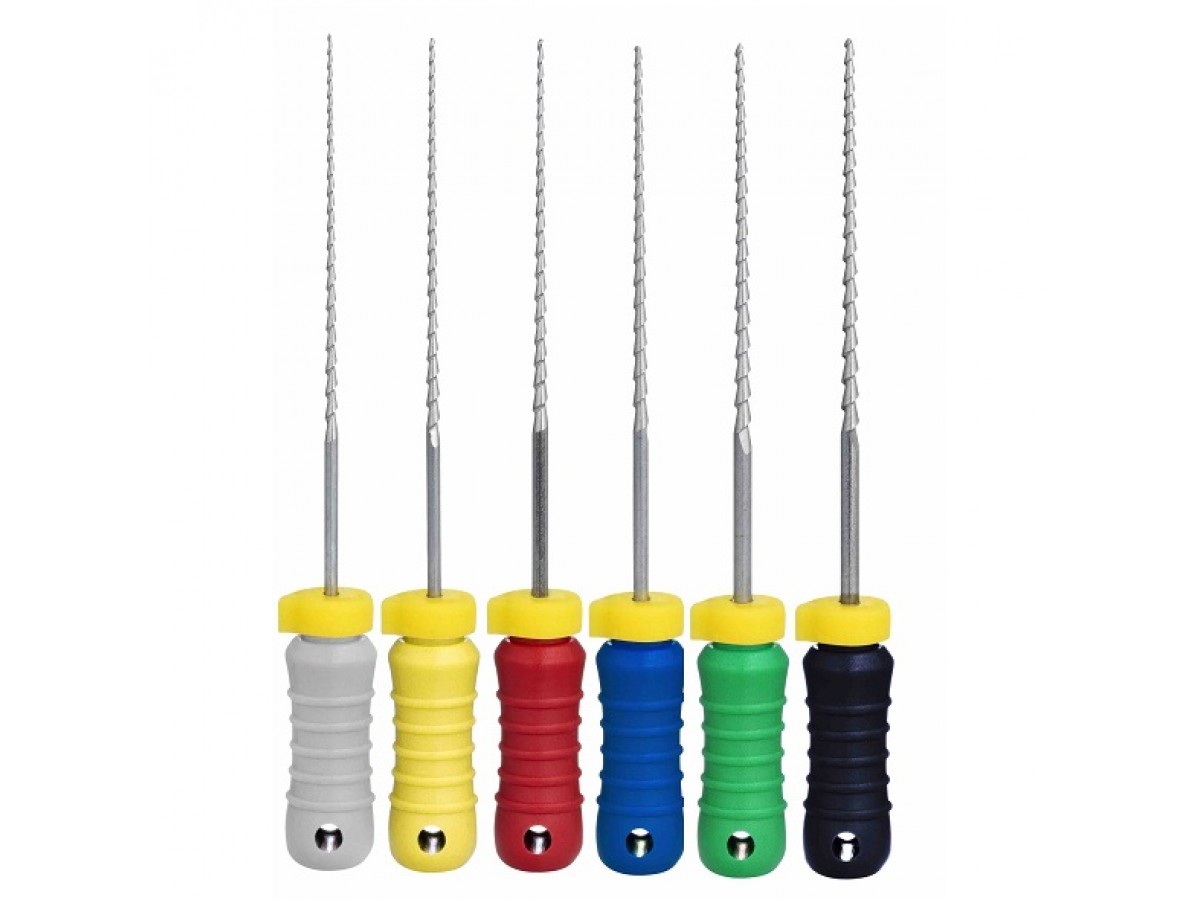 H-Files - ручной режущий стоматологический эндодонтический инструмент со спиральной нарезкой рабочей части. Материал рабочей режущей части - нержавеющая сталь, материал рукоятки – пластик (полибутилентерефталат). Производитель: EuroFile, КНР.