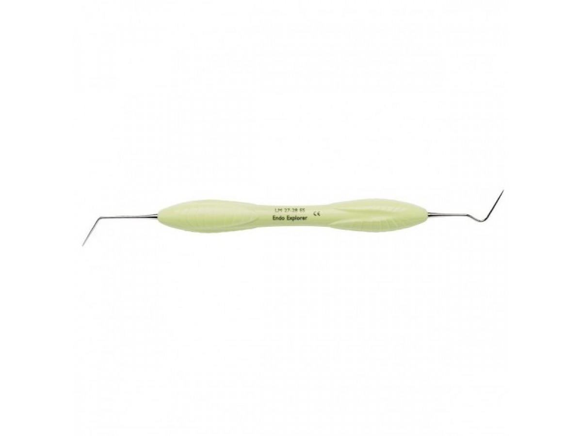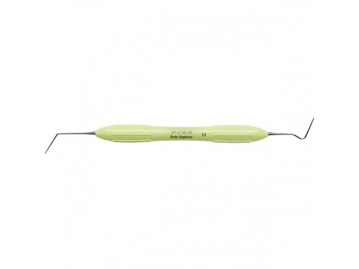 Инструмент терапевтический для поиска устьев корневых каналов LM 27-28 Endo Explorer. Длинный и острый кончик рабочей части облегчает обнаружение и раскрытие корневых каналов и обеспечивает доступ другим инструментам. Производитель: LM-Instruments Oy, Финляндия.