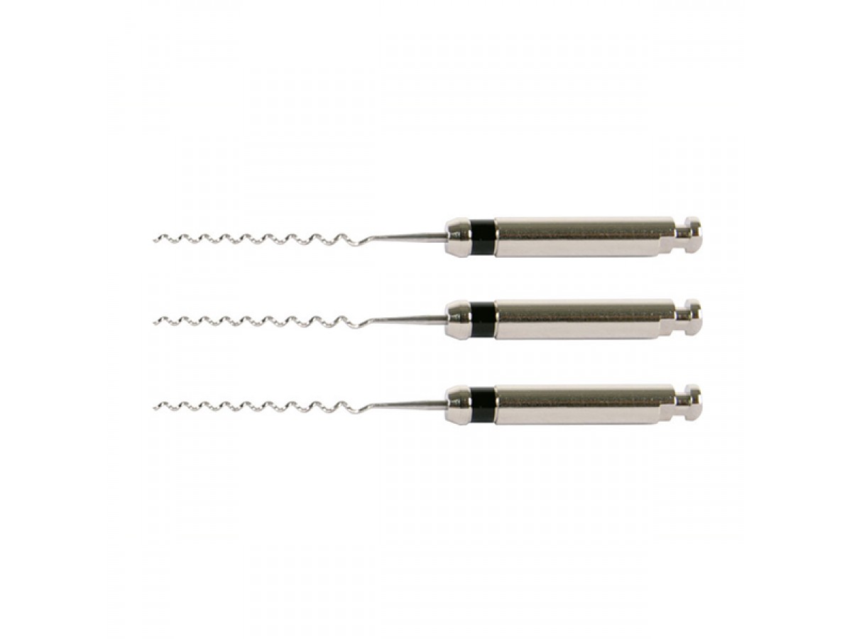 - Последовательно расположенные спирали обеспечивают отличную гибкость инструмента и равномерное распределение пломбировочного материала в системе корневого канала.
