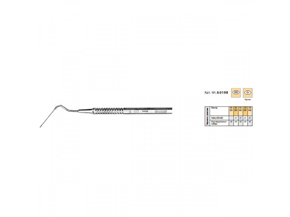 Spreader A ISO,4 шт. - уплотнитель гуттаперчи для латеральной конденсации, металлическая ручка. Производство: Dentsply Sirona, США.