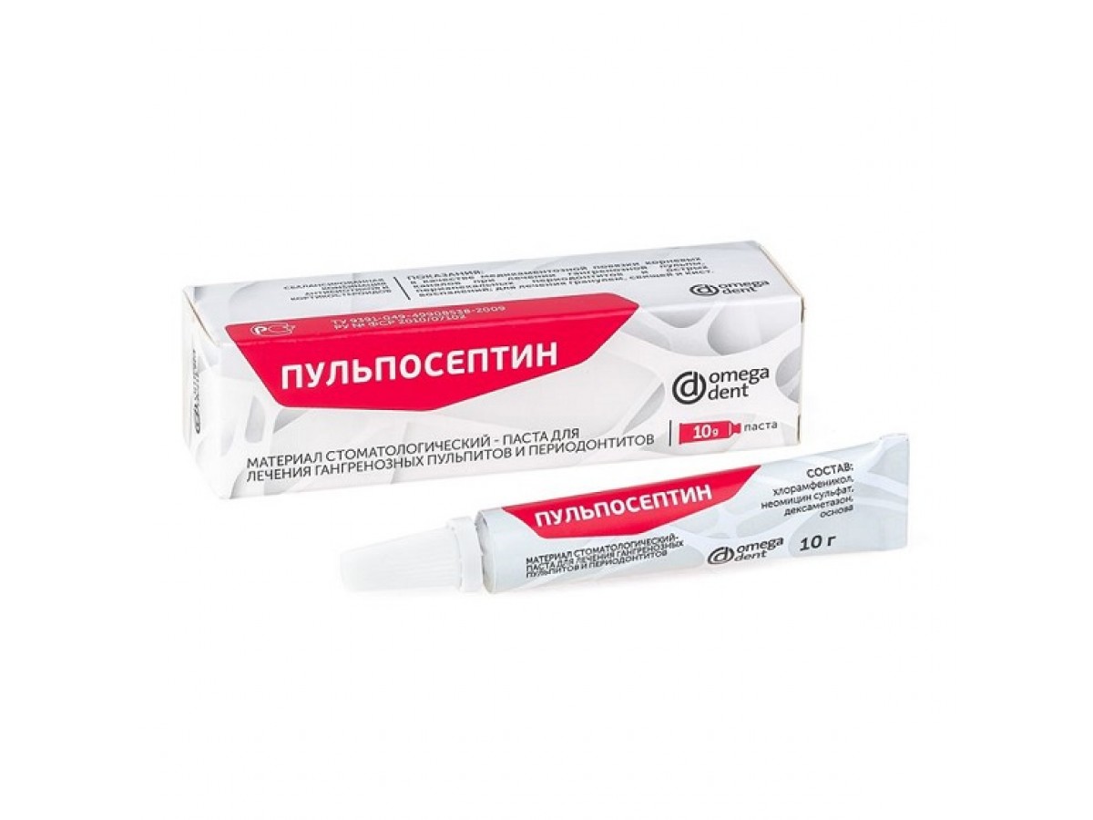 Пульпосептин - паста для лечения гангренозных пульпитов и периодонтитов. Производитель: ОмегаДент, Россия.