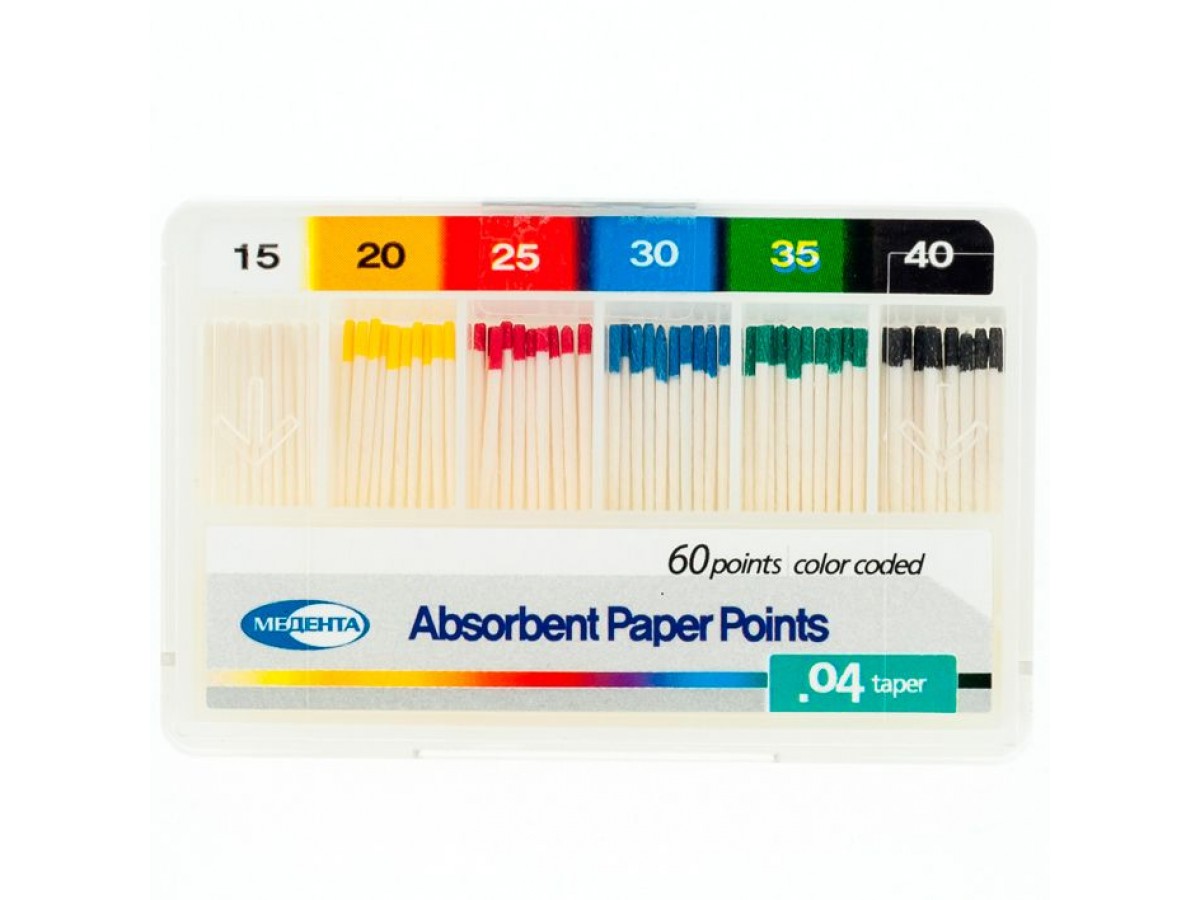- Штифты эндоканальные абсорбирующие бумажные применяются для высушивания корневых каналов перед их пломбированием, а так же для внесения пломбировочого силера в корневой канал.