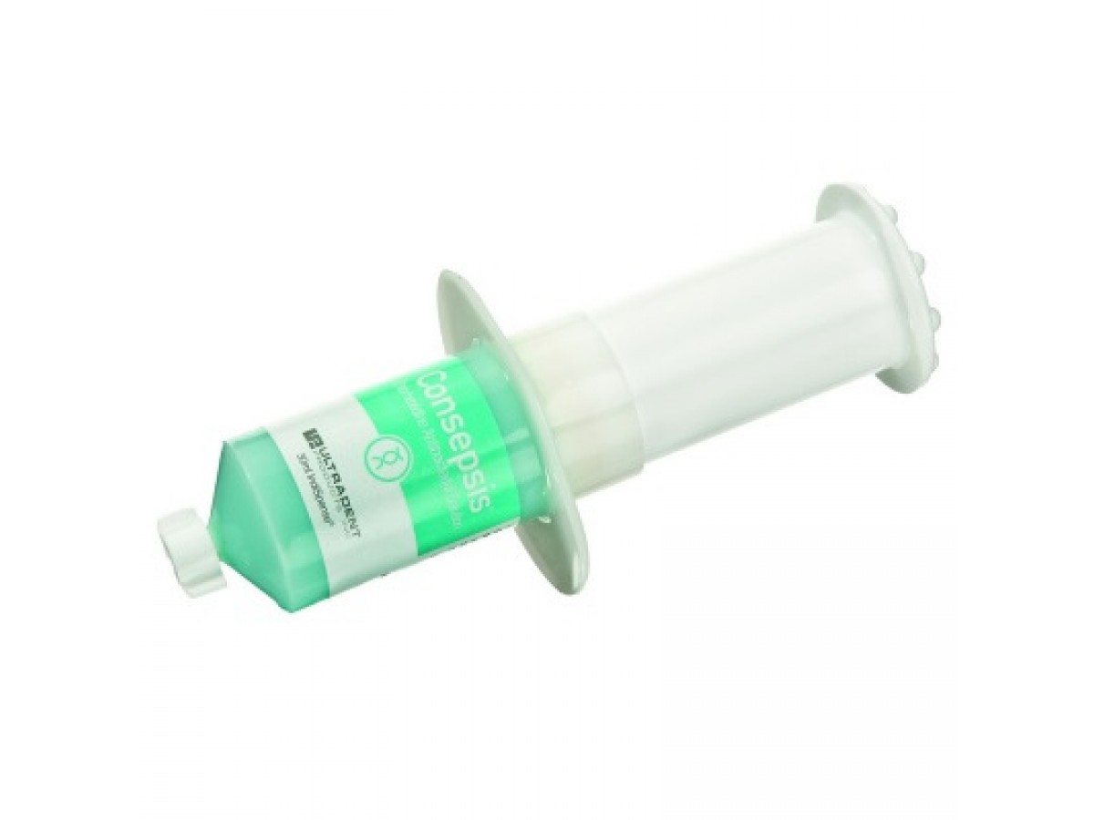 Consepsis - 2% раствор хлоргексидина для медикаментозной обработки кариозных полостей перед пломбированием их композитами. Производитель: Ultradent, США.