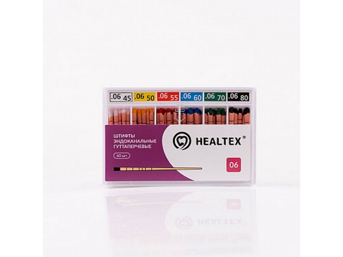 Гуттаперчивые штифты - для герметичного, долговременного пломбирования каналов с миллиметровой разметкой и цветной кодировкой. Производитель: Healtex, Южная Корея.
