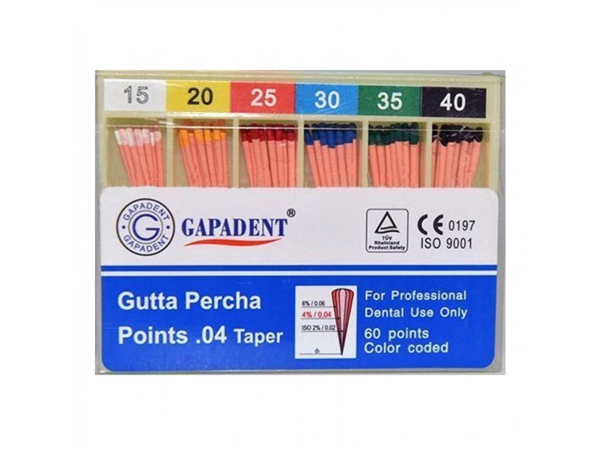 Гуттаперчевые штифты для пломбирования корневых каналов зубов в эндодонтии. Производитель: Gapadent, Южная Корея.