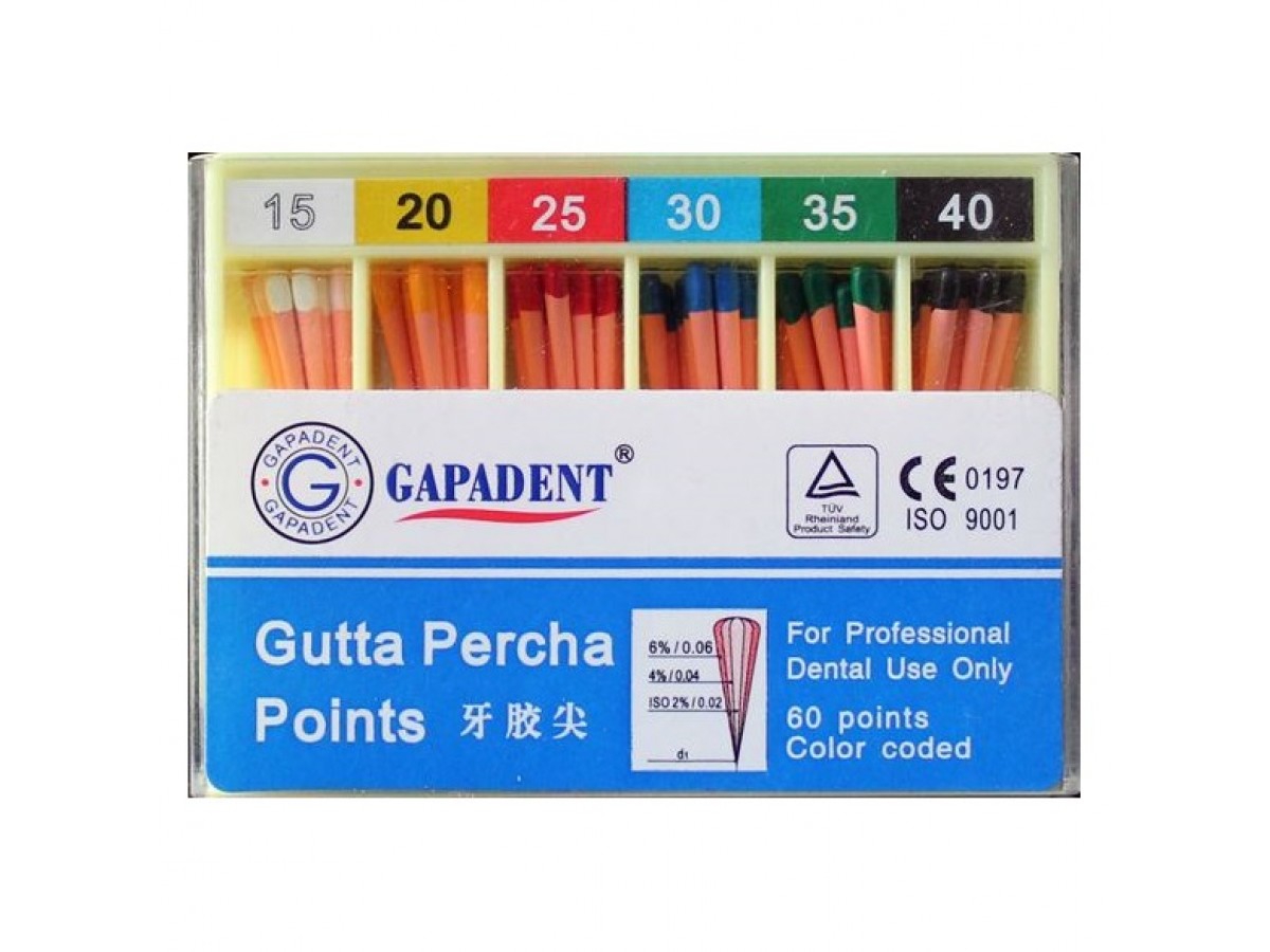 Гуттаперчевые штифты для пломбирования корневых каналов зубов в эндодонтии. Производитель: Gapadent, Южная Корея.
