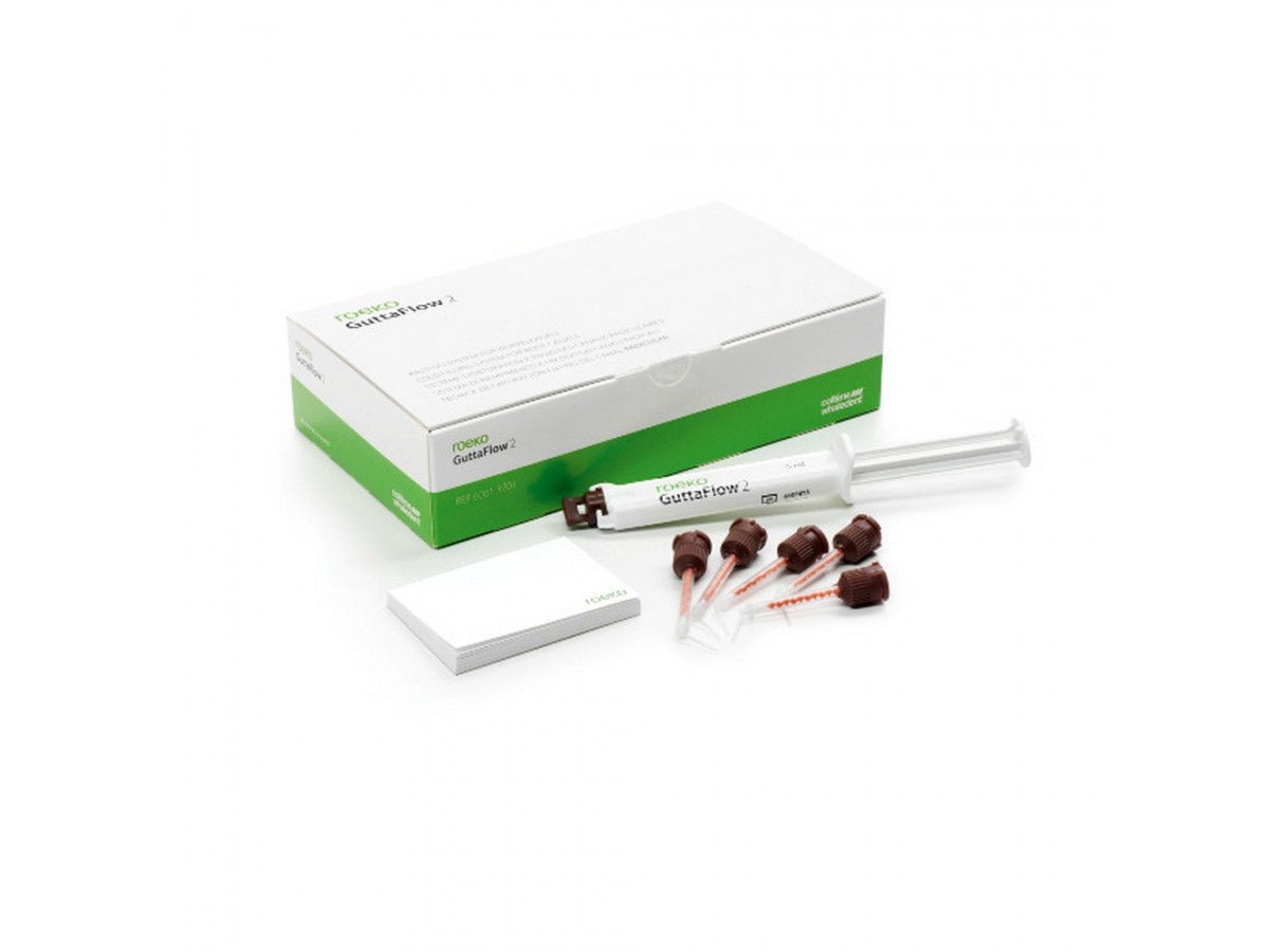 Gutta Flow - это ситема холодной текучей гуттаперчи для обтурированиея каналов. Представляющая из себя комбинацию силера (полидиметилсилаксановая основа) и гуттаперчи в одном продукте. GuttaFlow® благодаря химическому составу и физическим свойствам обеспечивает превосходную обтурацию и биосовместимость. Производитель: Coltene, Швейцария.