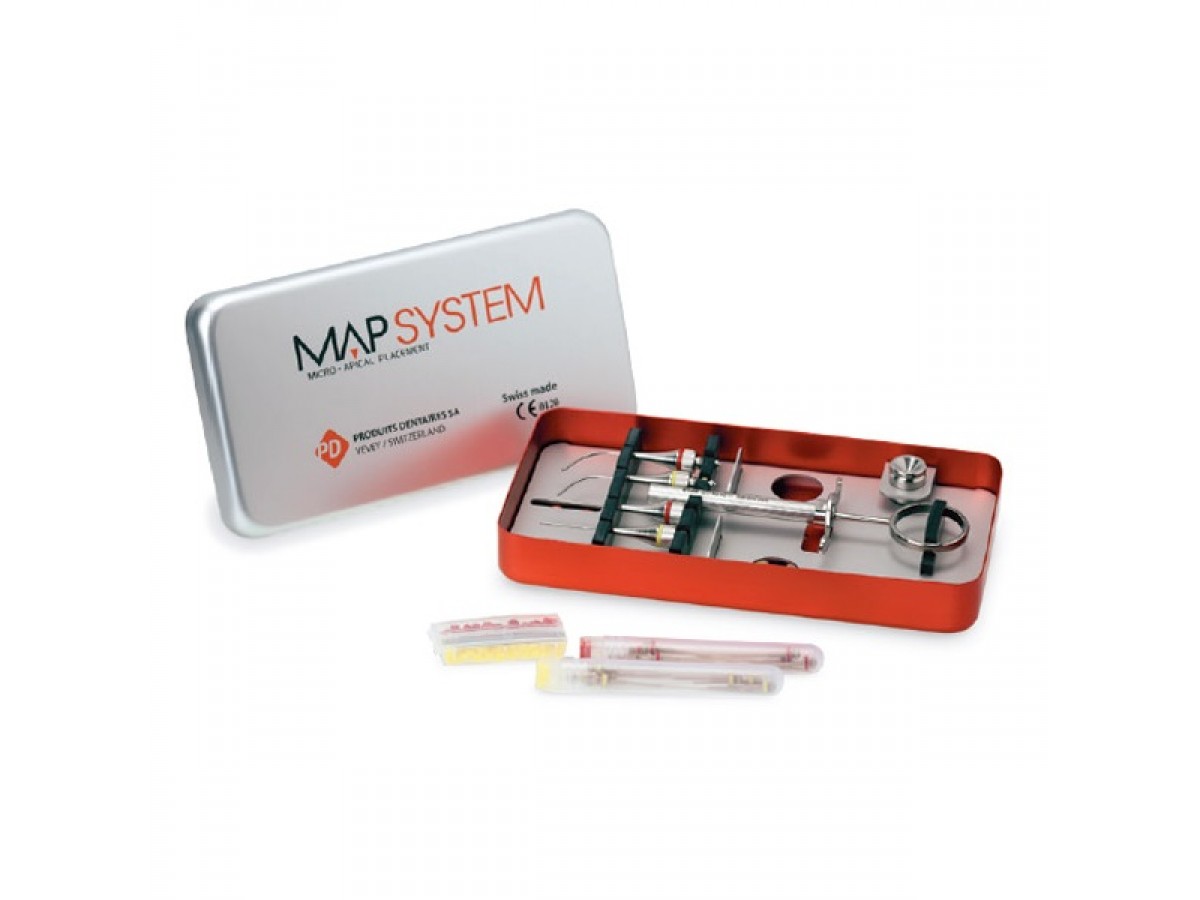 Endo и Retro наборы MAP System (системы микро-апикального позиционирования) позволяют точно и эффективно вносить материалы для пломбирования корневых каналов в процессе ортоградной или ретроградной обтурации. Производитель: Produits Dentaires SA, Швейцария.