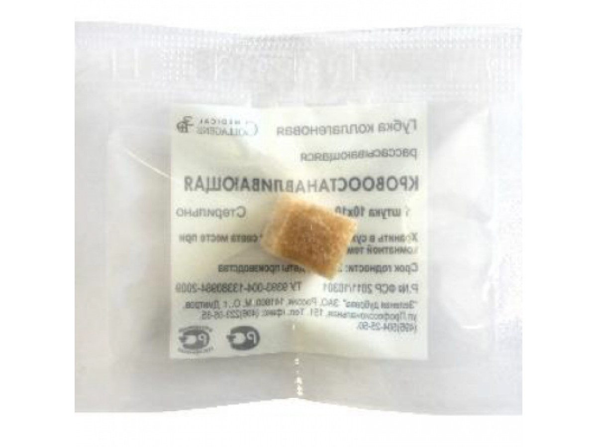 Губка гемостатическая коллагеновая кровоостанавливающая, размером 10х10 мм — 10 шт. в упаковке.