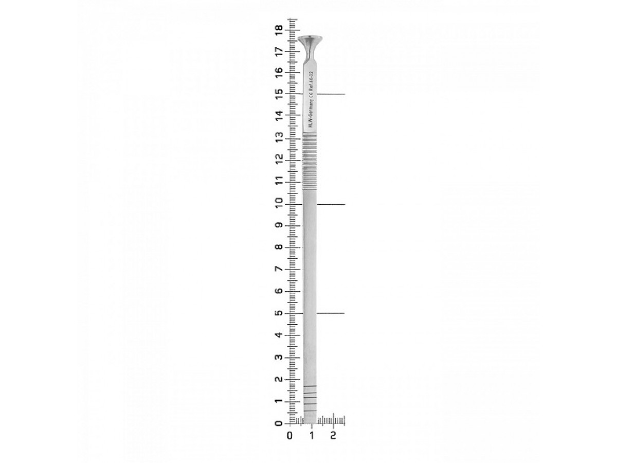 - Рабочая часть стоматологического инструмента имеет уплощенную форму с небольшим изгибом по плоскости и градуировочной шкалой 6, 9, 12, 14 и 17 мм.