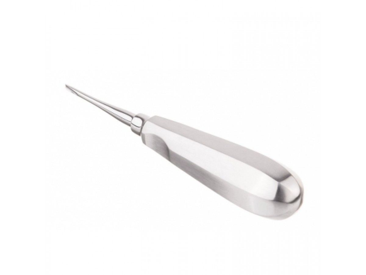 Элеватор зубной №720/10 E000473 - представляет собой конструкцию из объёмной ручки, металлического стержня-соединителя и узкой желобкообразной части - щёчки. Производитель: Agile Instruments, Пакистан.