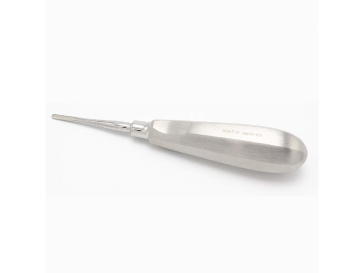 Элеватор зубной №720/13 E004902 - представляет собой конструкцию из объёмной ручки, металлического стержня-соединителя и узкой желобкообразной части - щёчки. Производитель: Agile Instruments, Пакистан.