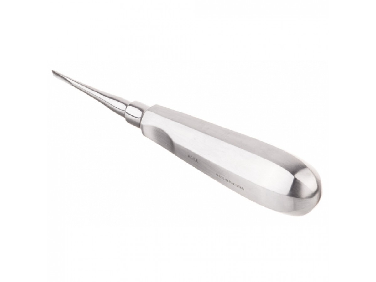 Элеватор зубной №720/4 E000480 - представляет собой конструкцию из объёмной ручки, металлического стержня-соединителя и узкой желобкообразной части - щёчки. Производитель: Agile Instruments, Пакистан.