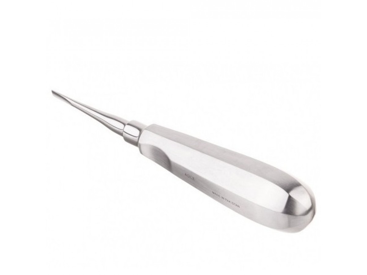 Элеватор зубной №720/5 E000481 - представляет собой конструкцию из объёмной ручки, металлического стержня-соединителя и узкой желобкообразной части - щёчки. Производитель: Agile Instruments, Пакистан.
