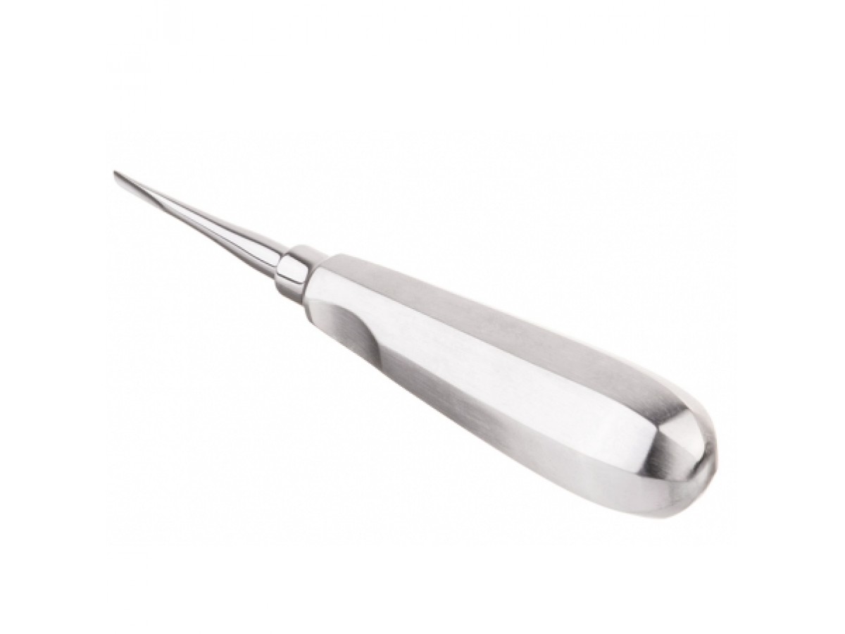 Элеватор зубной №720/8 E000485 - представляет собой конструкцию из объёмной ручки, металлического стержня-соединителя и узкой желобкообразной части - щёчки. Производитель: Agile Instruments, Пакистан.