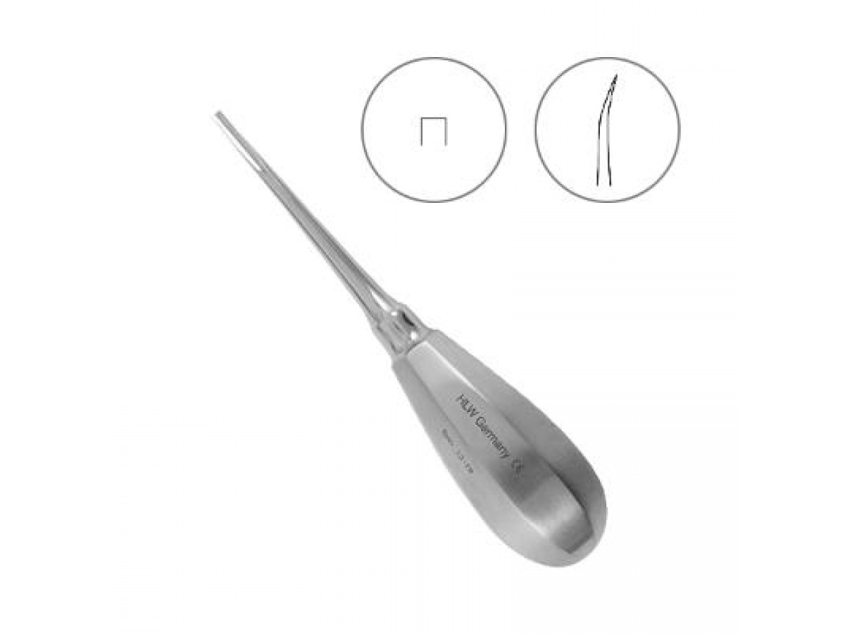 Элеватор конструкции Бейна, изогнутый, 3 мм, №13-7BC для удаления корней и зубов на верхней и нижней челюсти. Производитель: HLW Dental Instruments, Германия.