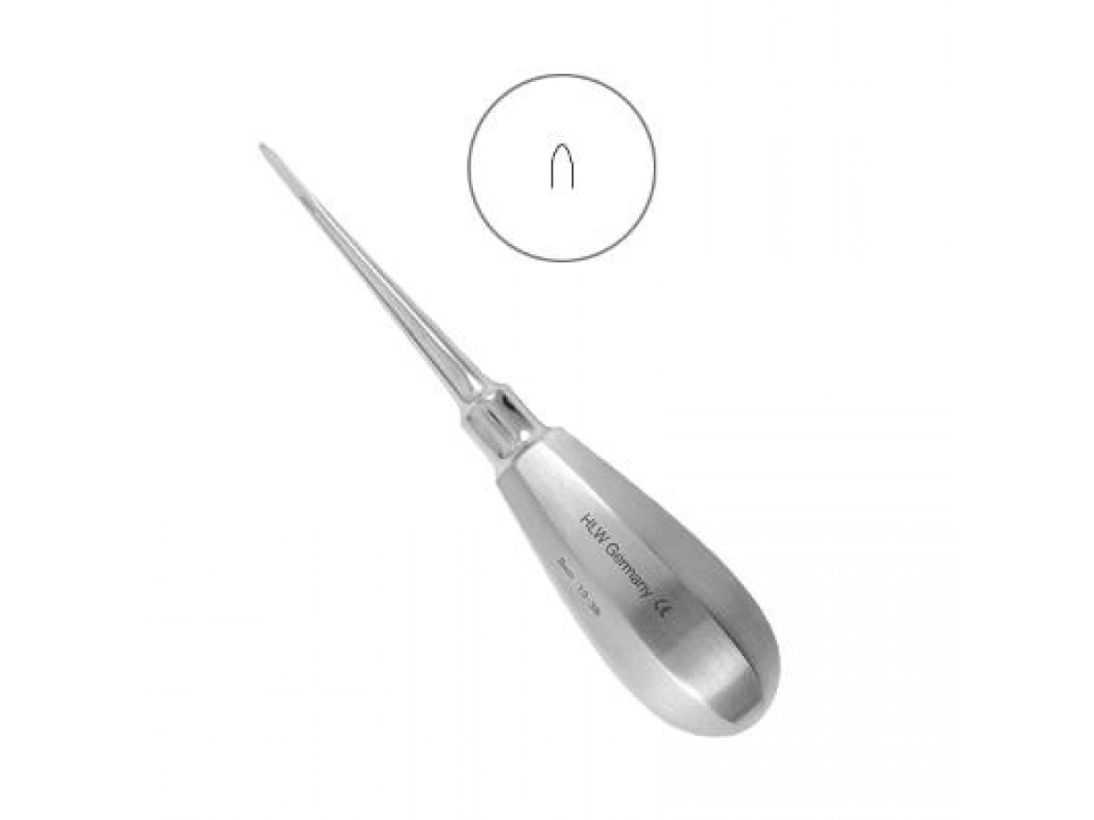 Элеватор конструкции Бейна, прямой, 2 мм, №13-3B для удаления корней и зубов на верхней и нижней челюсти. Производитель: HLW Dental Instruments, Германия.