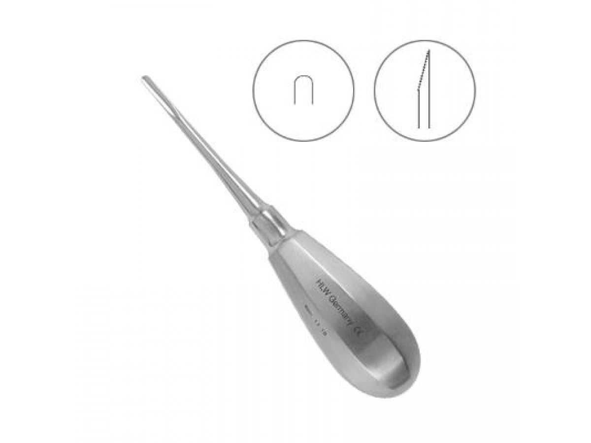 Элеватор конструкции Бейна, зубчатый, 3 мм, №13-1BZ для удаления корней и зубов на верхней и нижней челюсти. Производитель: HLW Dental Instruments, Германия.