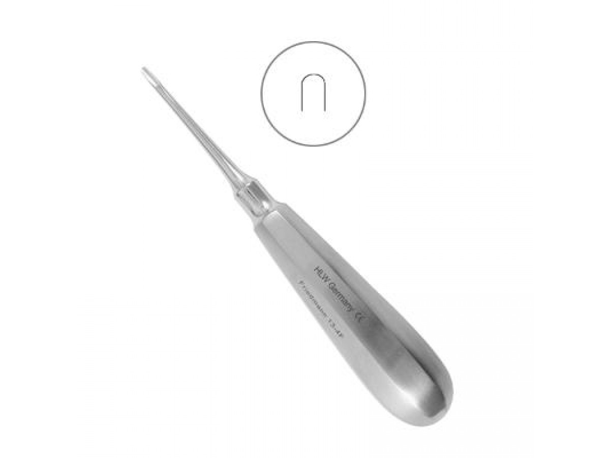 Элеватор конструкции Фридманна, прямой, 3 мм, №13-4F, для удаления корней, ретенированных зубов на верхней челюсти, реже на нижней челюсти. Производитель: HLW Dental Instruments, Германия.