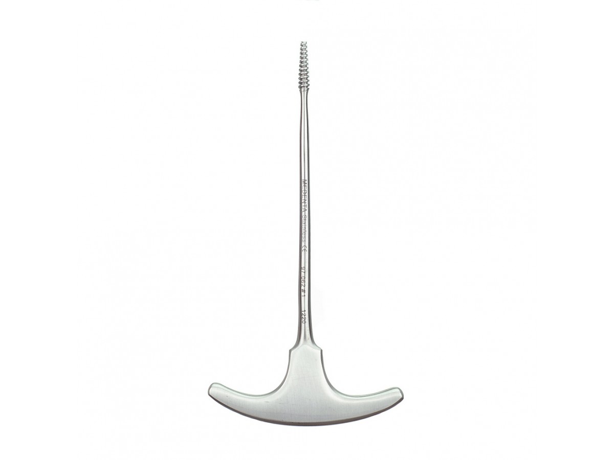 Инструменты стоматологические элеватор корневой (большой) 97-062-1-P. Ручной штыковой стоматологический инструмент для люксации и удаления зуба, состоящий из рабочей части, стержня и ручки для захвата. Производитель: Medenta Instrumets Co., Пакистан.