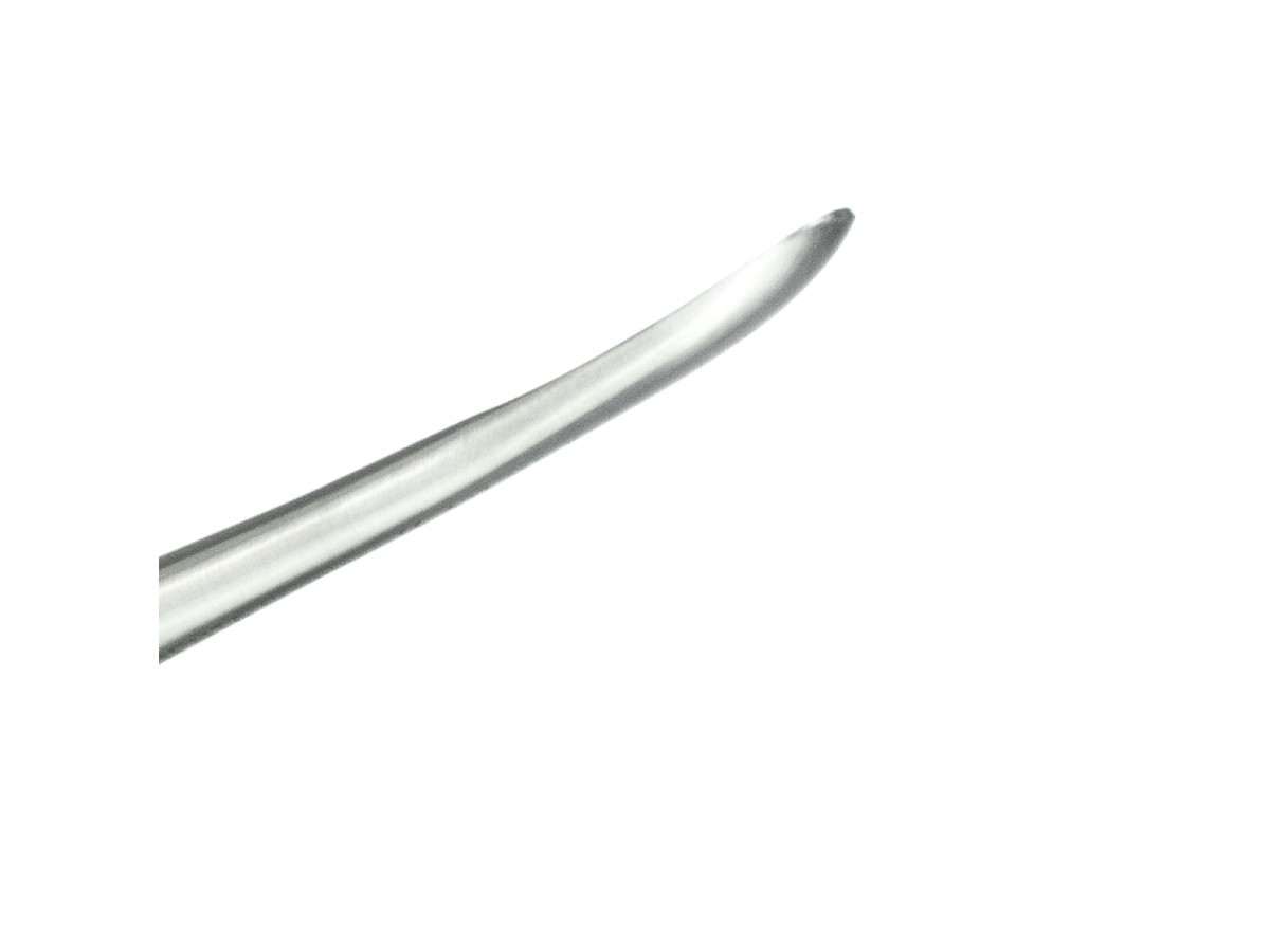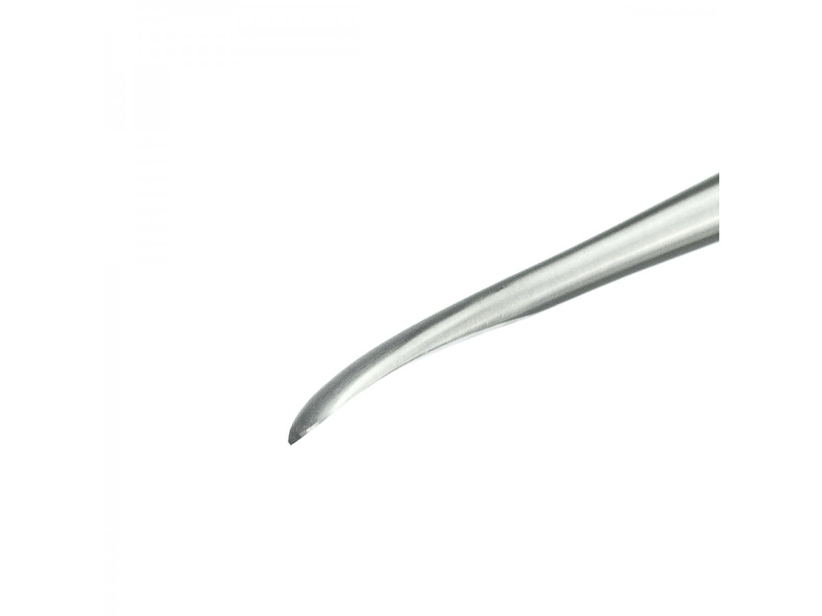 127-119-3 Элеватор периостальный двухсторонний (изогнутый, тупоконечный). Ручной штыковой стоматологический инструмент для люксации и удаления зуба, состоящий из рабочей части, стержня и ручки для захвата. Производитель: Medenta Instrumets Co., Пакистан.