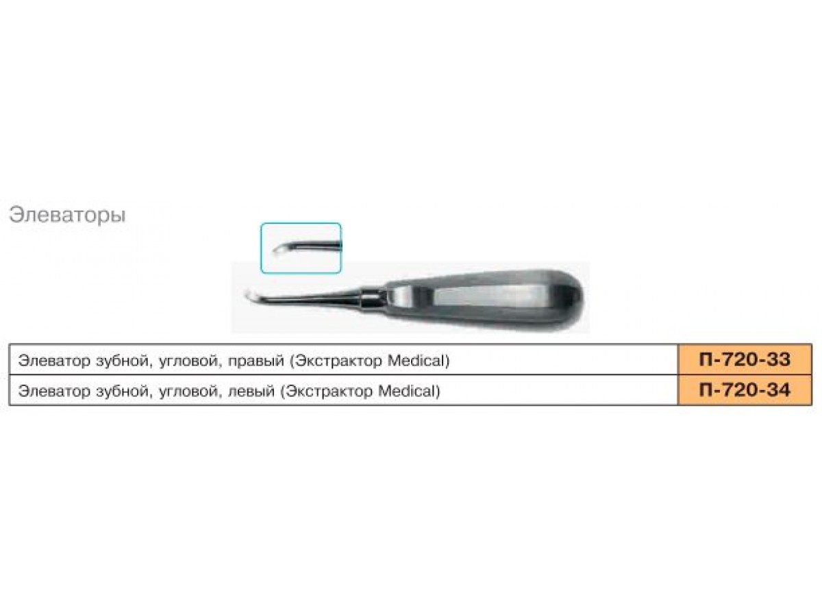 Предназначен для удаления верхних зубов и корней. Рабочая часть желобоватая с закруглённым кончиком. Производитель: Sammar, Пакистан.