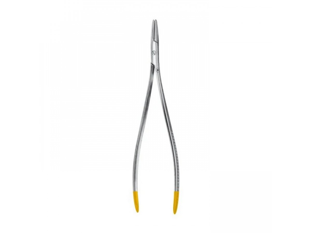 Иглодержатели производят из медицинской нержавеющей стали. Бывают иглодержатели легированные и с твердосплавными вставками. Имеют насечки на браншах и фиксатор - кремальеру.