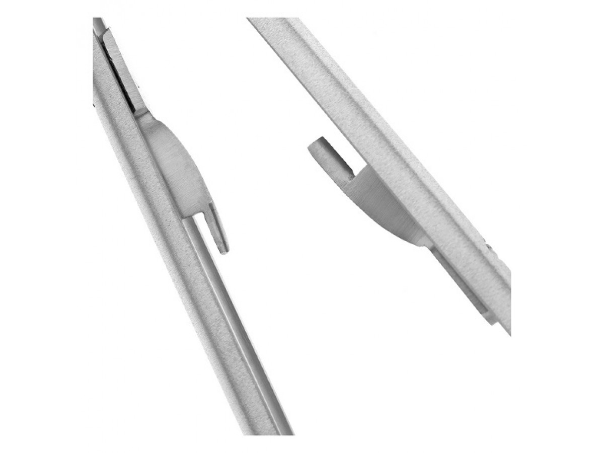 - Рабочие концы инструмента короткие, узкие и тупоконечные. Насечки на внутренних поверхностях иглодержателя предупреждают скольжение инструмента по плоскости хирургической иглы при наложении шва. Вставки из твердого сплава карбид-вольфрама на внутренних поверхностях прямых щечек иглодержателя обеспечивают повышенную устойчивость к истиранию.