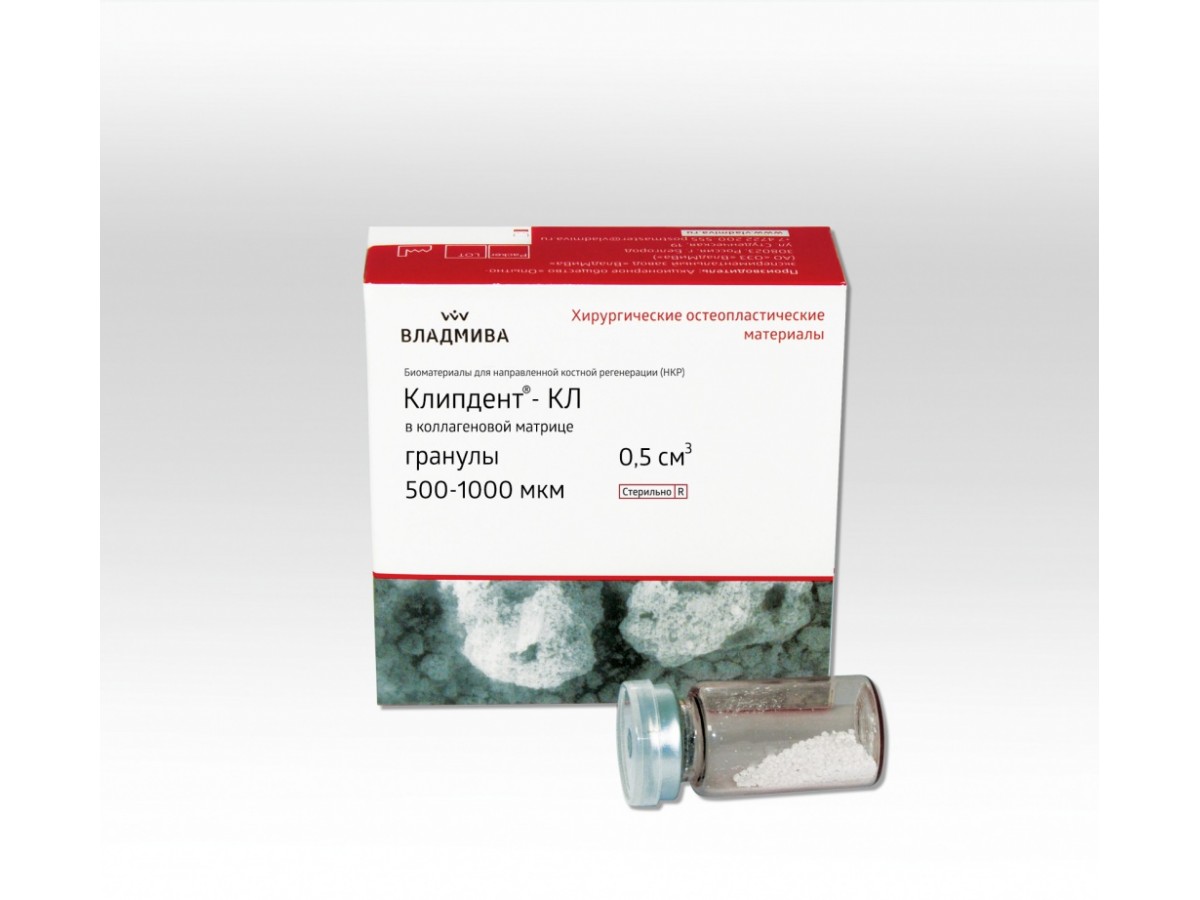 Материал Клипдент КЛ выпускается в коллагеновой матрице. Производитель: ВлаМиВа, Россия.