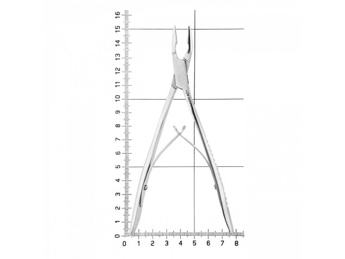 - Короткие, острые, с желобовидными углублениями щечки инструмента обеспечивают точечное скусывание костных участков без излишнего давления на соседние ткани.