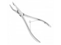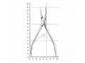 - Изгиб по плоскости в рабочей части дает возможность ввести инструмент глубоко в полость рта и без затруднений провести операцию по изменению поверхности костного гребня. Заостренные края и желобовидные углубления на внутренних поверхностях щечек кусачек обеспечивают точечное скусывание костных участков без излишнего давления на соседние ткани.