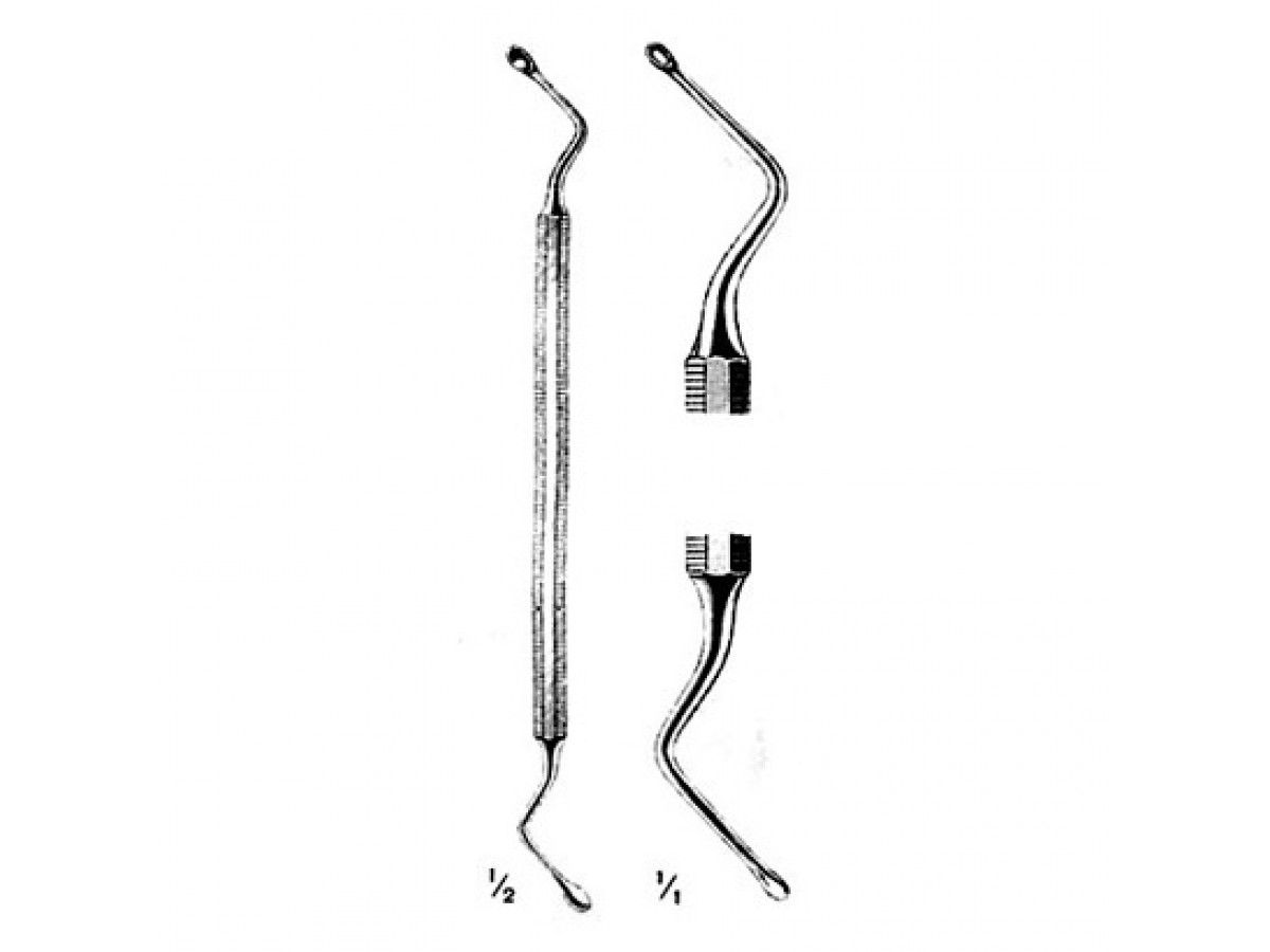 - Конструкция инструмента обеспечивает эффективное выскабливание пораженной костной ткани и удаление грануляций из лунок удаленных зубов.